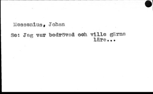 Messenius# Johan //// Se: Jag var beclrövoå och ville garna //// Itre•••