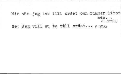 Min vän jag tar till ordet och rimmar litet //// sen... //// £' /8J£ SS //// Se: Jag vill nu ta tåll orået... e/s9s$