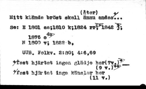 {Stor) y //// Mitt kiMrado bröst skall ännu andoa..• se: I 1801 aa; 1810 k;1824 rrpl842T 1876 //// N 1800 18SS> b, //// UUB. Folk?. 2:30; 4:6,69 //// ttast hjärtat ingen gläd jo bor( 7V.T4 . (9 ?. )VP //// t fast hjärtat inga känslor bar //// (11 ?.) //// et*