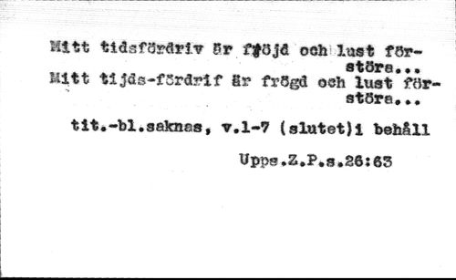 Mitt tldsfördrir gr fföjd och lust förstöra., • //// Mitt tijds-fördrif Sr frögd och lust för- //// stör», •. //// t it,-bl.saknas, ?,!-? (slutet)1 fcehåll //// Upps.Z.P.s.26:63