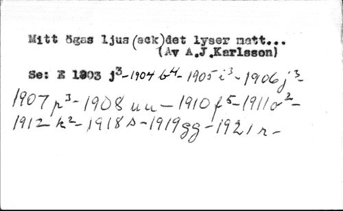 Mitt S308 1 jue/aclc^aet lyser natt*.. //// \ År å.J .Karlsson) //// Se; 1 1903 $K/joy ¿¿C }°rOC?j //// ItoifS-nöiuu.-iiiowii/o' Mru JfH/a -