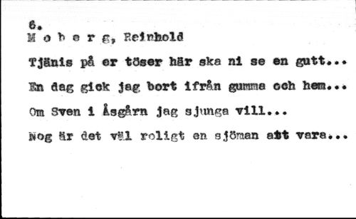 X o» //// o h 0 r g, Eeirhold Tjänis på er töser här ska ni se en gutt. ®n öag gick Jag bort ifrån garna GCh hera. Om Sven i åsgårn Jag sjunga vill.,, wog Sr det v¥l roligt an sjöman att vara*