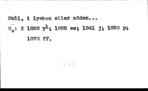 Skål, 1 lyckan eller nöden... //// S~s l 1828 y1; 1855 ee; 1841 ji 1850 p; 1870 ff, //// ) V