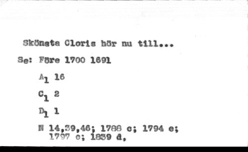 Skönatö Cloris hör nu tili.,* S©î Före 1700 1891 //// H iß //// Cl 2 \ 1 //// H 14,39,46; 1788 c; 1794 e; 1797 c; 1839 à.