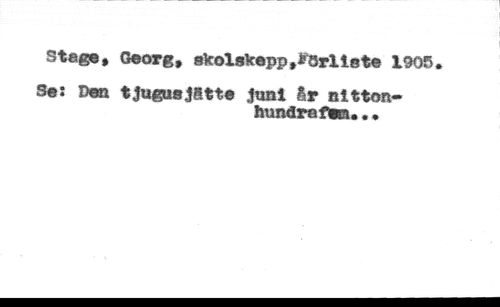 St«ge# Georg, skolskepp,*5rllste 1905. //// S®: Den tju&wjatte juni Sr nitton- //// hundref»m...