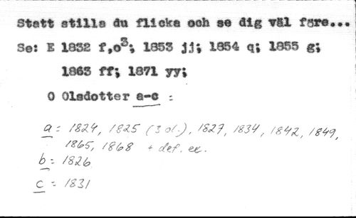 Statt stille ån flicka och aa dig *81 fara... //// Set S 1832 f ,03; 1853 JJ*t 1834 q\ 1855 g; //// 1863 ft\ 1871 yy; //// 0 Oladotter a-C ; //// £- /¿¿K set? fs otj, /s¿?, mv, fg*z //// /Z'^&g * of if, &C , //// b - /áVé //// c - m/