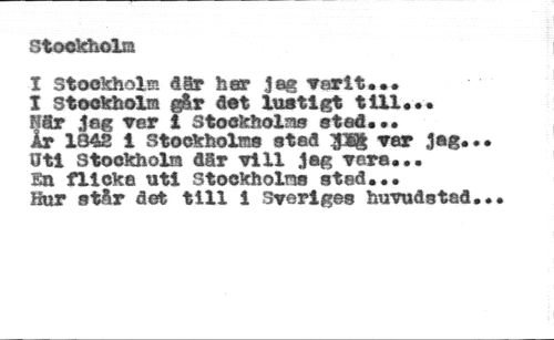 Stockholm //// 1 Stockholm dir her Jag varit.•• //// 1 Stockholm #r det lustigt till... nSt Jeg ver i Stockholm» sted... //// År 184S i Stockholms stad :p$ ver Jag... Uti Stockholm dår vill Jag vara... //// En flicka uti Stockholms stad... //// Hur står det till i Sveriges huvudstad...