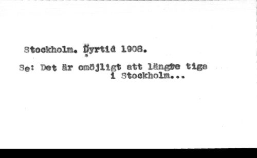 Stockholm* ßyrtlö 1908. //// s©î Det 8r omöjligt att längte tige //// 1 Stockholm...