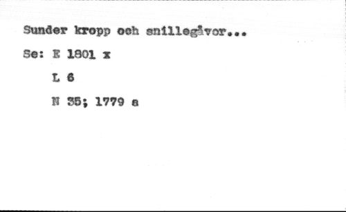 Sunder kropp och snillöf^?sr. Se: I 1801 x L 6 //// H S5; 1779 e