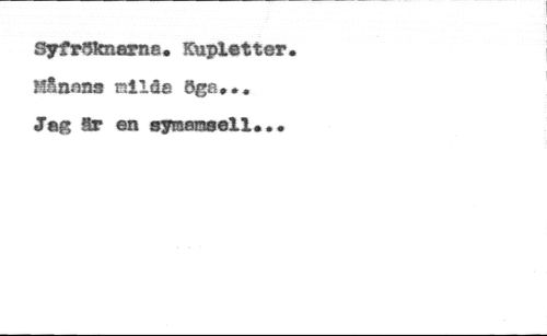 syfrSkname. Kupletter. //// Mfiaeas nllde öga... //// Jag ar en ayraemeell...