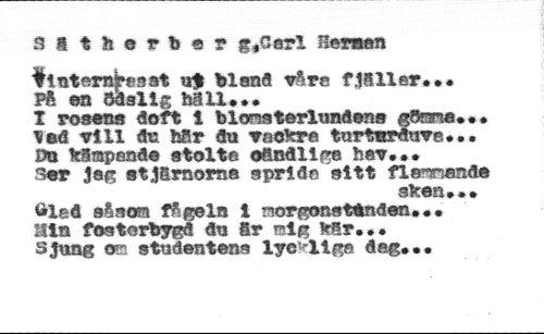 satherbsr g.Csrl H«wm //// 'tlnternbesat uf bl ena vår*? f.1811 er.*# //// På en Ödslig hall... //// I rosens doft l blonstorlundens gösma... ?ed rill an hSr au raefer© turtrarftuve... Du feispsnde stolte ofinailge har... //// ^er Jer, stjärnorna sprida sitt flssnende //// sfeen... //// ölea sÄaora fågeln 1 norgonsttnden... aia fosterbygd au Sr sig feir.,* sjung ora studentens lycklige deg...
