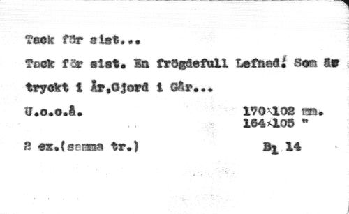 Teck fSr eiet**« //// Teck far siet« Sa frôgûefull Lefnad; Son Sm //// tryckt i år.Ojord i Oår*.* //// U.o.o.å. 170\10S a»« //// 164x105 • //// S «r.îsrme tr.) //// Bj. 14
