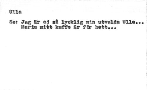 Ulla //// Se: Jag &t aj aå lycklig min utreia* Ulla... Bar ia sitt kaffe Sr ft* hatt...