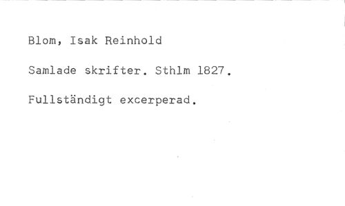 Blom, Isak Reinhold //// Samlade skrifter. Sthlm 1827. Fullständigt excerperad.