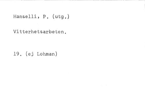 Hanselli, P. (utg.) Vitterhetsarbeten. //// 19. (ej Lohoran)