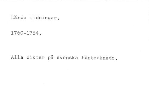 Lärda tidningar. //// 1760-1764. //// Alla dikter på svenska förtecknade.