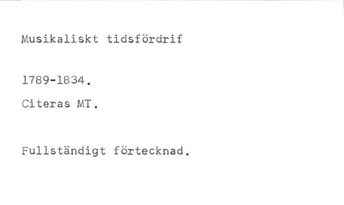 Musikaliskt tidsfördrif //// 1789-1834. Citeras MT. //// Fullständigt förtecknad.