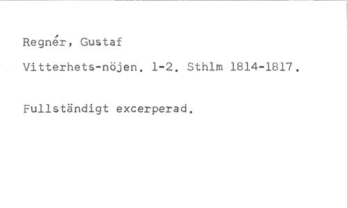 Regner, Gustaf //// Vitterhets-nöjen. 1-2. Sthlm 1814-1817. //// Fullständigt excerperad.