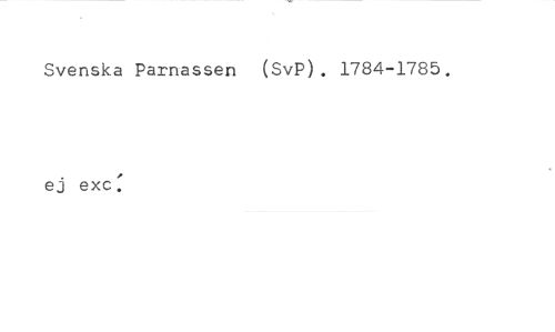 Svenska Parnassen (SvP) . 1784-1785. //// ej exc.