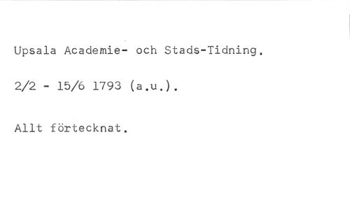 Upsala Academie- och Stads-Tidning. 2/2 - 15/6 1793 (a.u.). //// Allt förtecknat.
