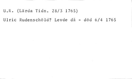 U.R. (Lärda Tidn. 28/3 1765) //// Ulric Rudenschöld? Levde då - död 6/4 1765
