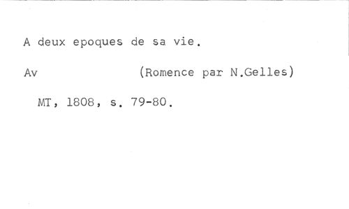 A deux epoques de sa vie. //// Av (Romence par N.Gelles) //// MT, 1808, s. 79-80.