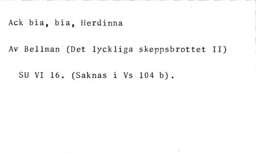 Ack bia, bia, Herdinna //// Av Bellman (Det lyckliga skeppsbrottet II) //// SU VI 16. (Saknas i Vs 104 b).