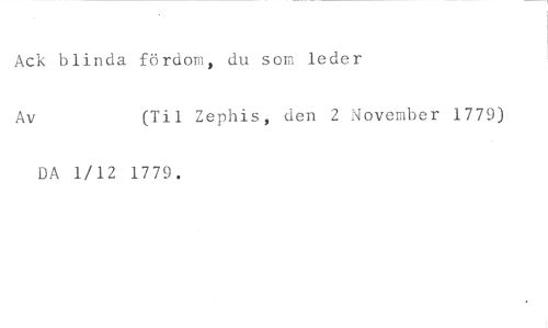 Ack blinda fördom, du som leder //// Av (Til Zephis, den 2 November 1779) //// DA 1/12 1779.