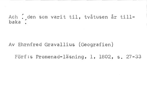 Ach : den som varit til, tvåtusen år tillbaka //// Av Ehrnfred Gravallius (Geografien) //// Förf:s Promenad-läsning, 1, 1802, s. 27-33