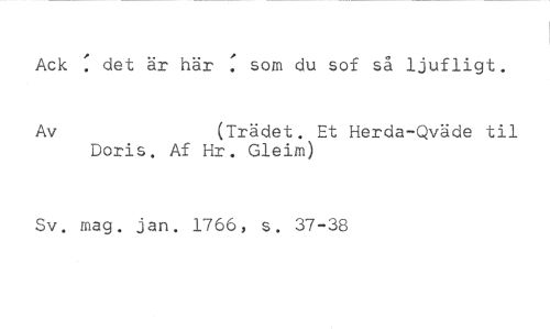 Ack : det är här : som du sof så ljufligt. //// Av (Trädet. Et Herda-Qväde til //// Doris. Af Hr. Gleim) //// Sv. mag. jan. 1766, s. 37-38