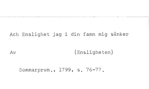Ach Enslighet jag i din famn mig sänker //// Av (Ensligheten) //// Sommarprom., 1799, s. 76-77.
