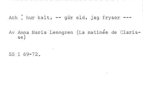 Ach : hur kalt, -- gör eld, jag fryser --- //// Av Anna Maria Lenngren (La matine de Clarisse) //// SS I 69-72.