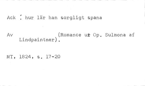 Ack : hur lär han sorgligt spana //// Av (Romance ut Op. Sulmona af //// Lindpaintner). //// MT, 1824, s. 17-20