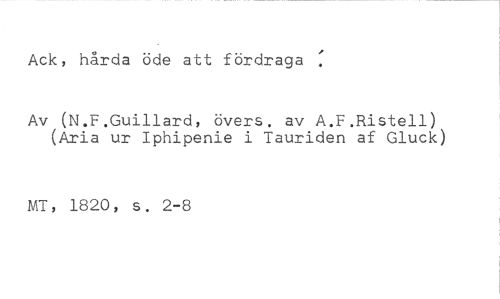 Ack, hårda öde att fördraga //// Av (N.F.Guillard, övers, av A.F.Ristell) (Aria ur Iphipenie i Tauriden af Gluck) //// MT, 1820, s. 2-8