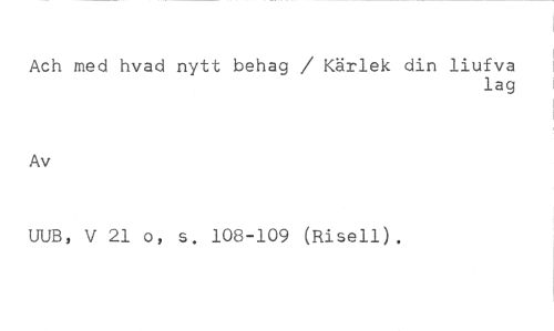 Ach med hvad nytt behag / Kärlek din liufva //// lag //// Av //// UUB, V 21 o, s. 108-109 (Risell).