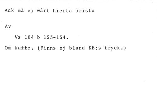 Ack må ej wårt hierta brista //// Av //// Vs 104 b 153-154. //// Om kaffe. (Finns ej bland KB:s tryck.)