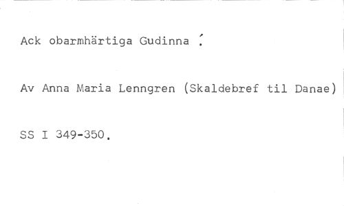 Ack obarmhärtiga Gudinna : //// Av Anna Maria Lenngren (Skaldebref til Danae) //// SS 1349-350,