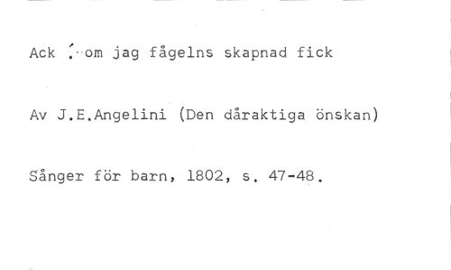 Ack :-om jag fågelns skapnad fick //// Av J.E.Angelini (Den dåraktiga önskan) //// Sånger för barn, 1802, s. 47-48.