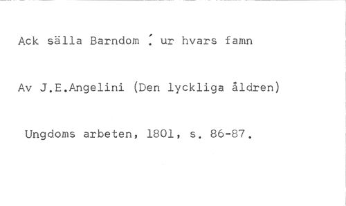 Ack sälla Barndom : ur hoars famn //// Av J.E.Angelini (Den lyckliga åldren) //// Ungdoms arbeten, 1801, s. 86-87.
