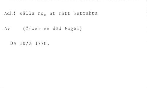 Acht sälla ro, at rätt betrakta //// Av (bfwer en död Fogel) //// DA 10/3 1770.
