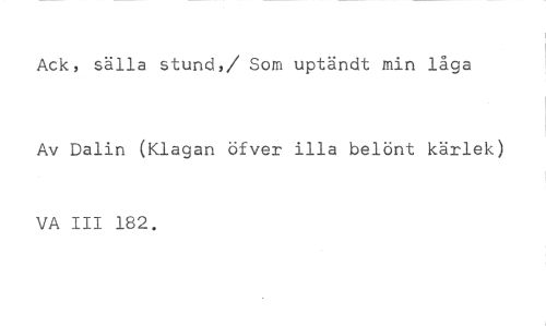 Ack, sälla stund,/ Som uptändt min låga //// Av Dalin (Klagan över illa belönt kärlek) //// VA III 182.