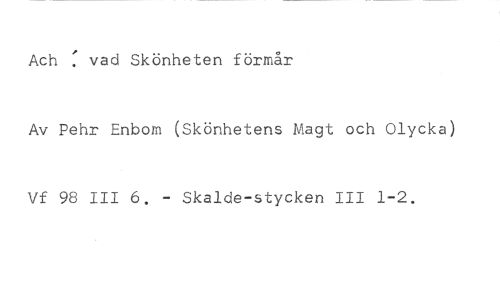 Ach : vad Skönheten förmår //// Av Pehr Enbom (Skönhetens Magt och Olycka) //// Vf 98 III 6. - Skalde-stycken III 1-2.