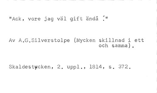 "Ack, vore jag väl gift ändå :" //// Av A.G.Silverstolpe (Mycken skillnad i ett //// och samma). //// Skaldestycken, 2. uppl., 1814, s. 372.