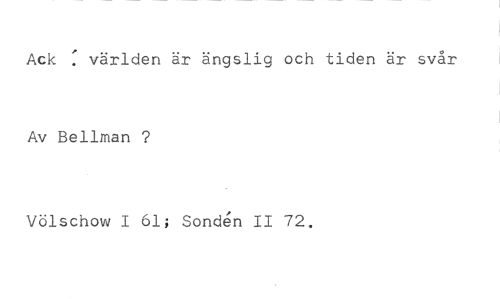 Ack : världen är ängslig och tiden är svår //// Av Bellman ? //// Völschow I 61; Sonden II 72.