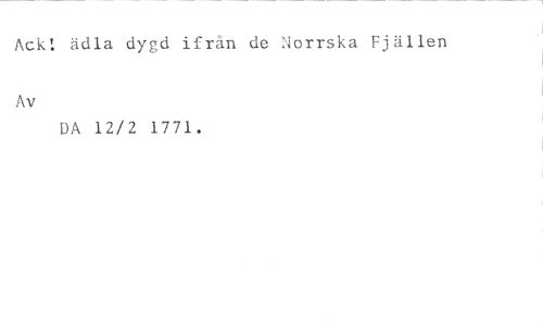 Ack! ädla dygd ifrån de Norrska Fjällen //// Av //// DA 12/2 1771.