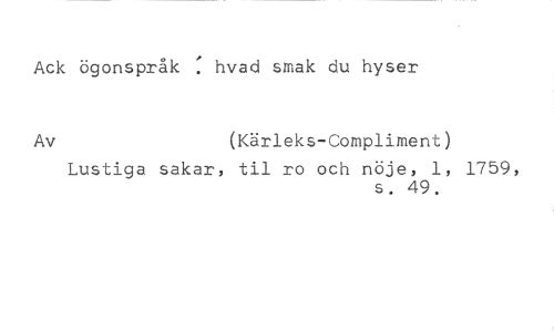 Ack ögonspråk kvad smak du hyser //// Av (Kärleks-Compliment) //// Lustiga sakar, til ro och nöje, 1, 1759, //// s. 49,