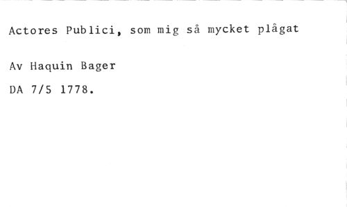 Actores Publici, som mig så mycket plågat //// Av Haquin Bager DA 7/5 1778.