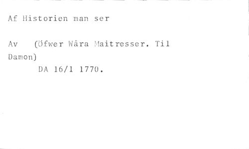 Af Historien man ser //// Av (Öfwer Wåra Maitresser. Ti1 //// Damon) //// DA 16/1 1770.