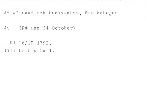Af vördnad och tacksamhet, ömt betagen //// Av (På den 24 October) //// DA 26/10 1792. Till hertig Carl.