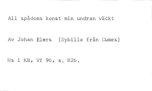All spådoms konst min undran väckt //// Av Johan Elers (Sybilla från Cumes) //// Hs i KB, Vf 96, s. 826.